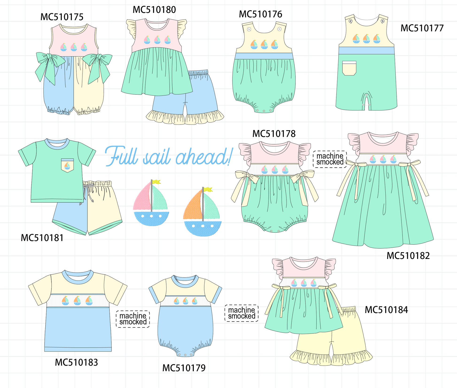 *Pre-Order* Colors Block Sailboat - Embroidery collection