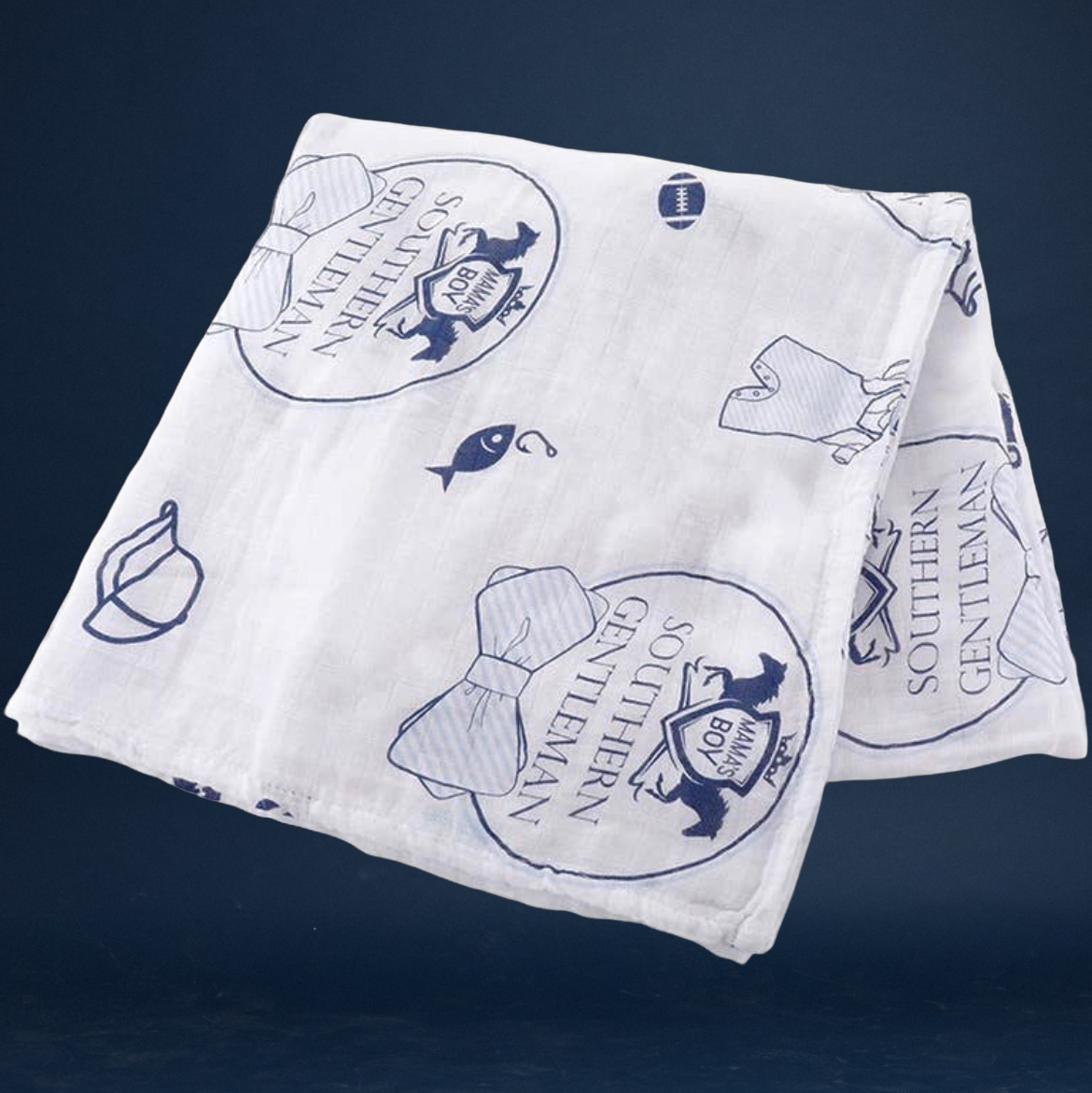 47" x 47". Extra soft muslin bamboo with cotton blend. Breathable fabric to help prevent overheating.