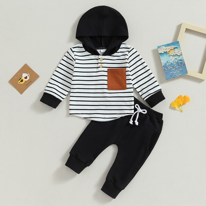 2 piece lounge set perfect for play or every day wear. Features a faux leather pocket.